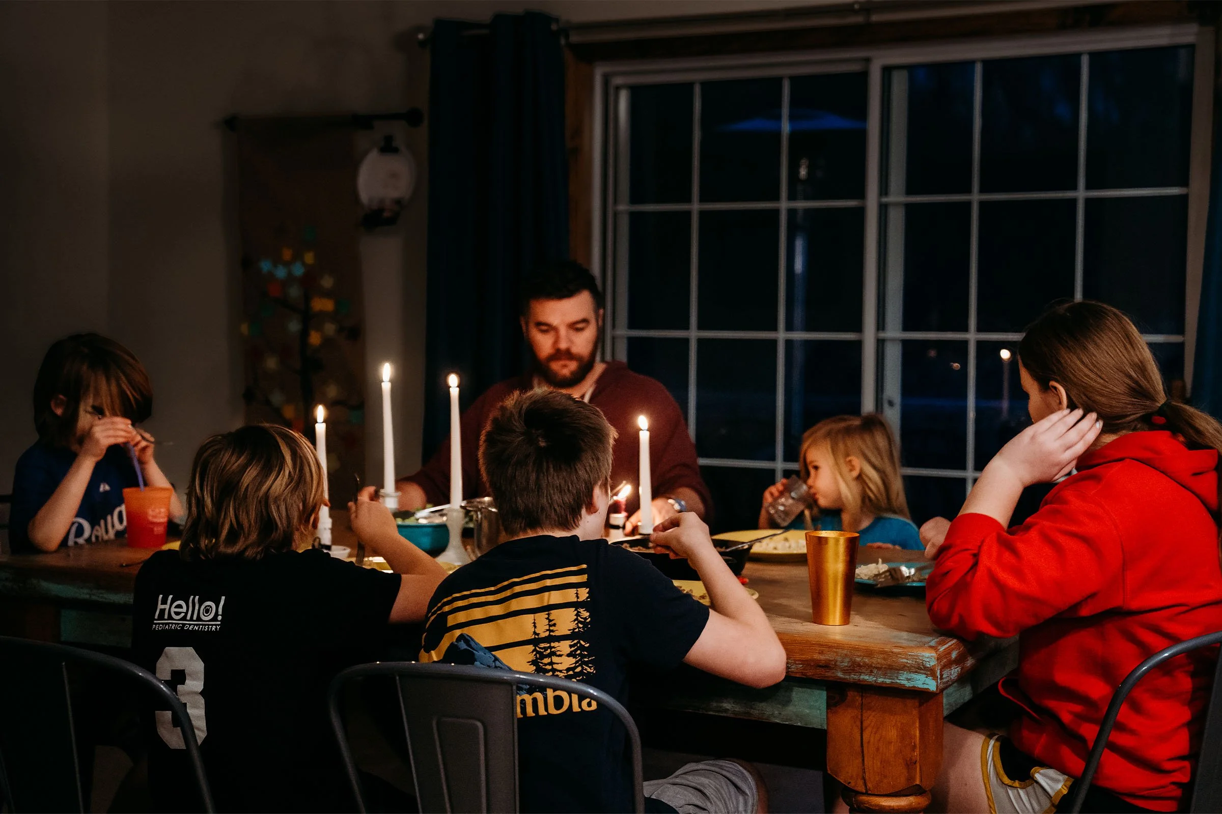 “The space after dinner is one of the (almost) daily rhythms my family holds sacred. The dishes don’t quite need scrubbed & our loud home lowers to a low roar. We linger at the table. We light candles, read a little & talk about our hearts & dreams, hard moments & how to make the world a little brighter. Oh sure there’s a burp & some bickering mixed in there too (that’s certainly a part of being a family too), but this time at the table is a regular Sabbath margin desperately needed to refuel our weary souls. It’s a sacred space to remind us of Truth and Light so darkness does not overcome our hearts. We reconnect. The dandelion fluff lands together again.”